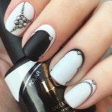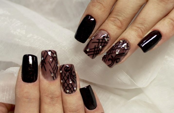 However, one cannot fail to note the fact that rhinestones and crystals can contribute to the decoration of dark manicure. Only now, if they are not dosed, then they can make even expensive and effective design cheap and vulgar. Any composition, consisting of a placer of stones and rhinestones, covering almost half of the nail, has long been considered a sign of bad taste.