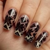 One of the best techniques designed for dark tones is the “veil” or “nylon” design. Not a single light coating is capable of conveying that beauty and airiness of a translucent design with a delicate pattern, as black, violet, dark blue and velvet-burgundy tones of the color palette do. Moreover, such a design is suitable for both mature women and young girls.