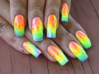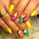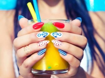 Of course, it is necessary to provide for whether such a manicure fits into the lifestyle of a person who wants to apply this varnish. For example, many companies have a clear dress code, right down to the shades of nail polish. Therefore, before you paint your nails with cheerful flowers or fruits, you need to think about whether it is permissible to appear with them in the workplace. If there are no such problems, then the color palette and design intent are limited only by the artist’s imagination.