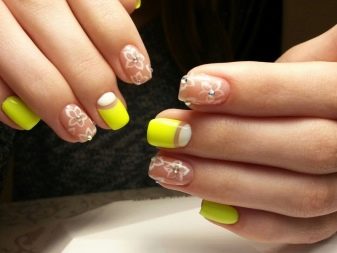 A traditional jacket may also be bright if you lay out the “smile” not in white, but, for example, in a neon green color. Currently, there is such a huge selection of colors and shades of varnish (as well as their texture - "cat's eye", sand, craquelure, plush) that it is not difficult to create your own unique combination.