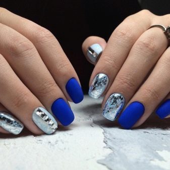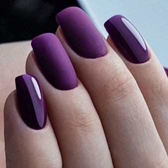 The contrast of glossy and matte finish is still in fashion. Therefore, if it is necessary that there is a color, but do not want to perform too complex a shade, you can make a similar manicure. Thus, the hands will not look too catchy and boring.