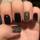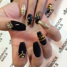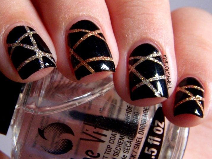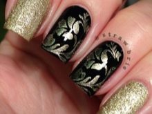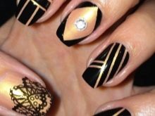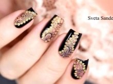 The secret of the popularity of gold manicure lies in the fact that it is universal, suitable for almost any surroundings. The gold color is successfully combined with almost any garment: from ripped jeans to a black evening dress. A black manicure with any golden patterns is always a win-win option that will look stunning under any circumstances.