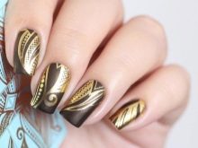 Now the trend has receded a bit into the background, but nevertheless, a golden tone in various combinations “rules”. Dark nails with golden patterns continue to look very stylish and modern.