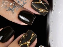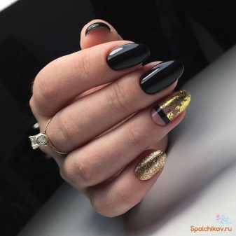 Also, nails are often decorated with a special textured foil, applying gold to one nail (it can be the little finger), the remaining fingers remain in black colors.