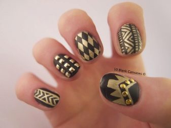 Sometimes satiation comes from the presence of a golden manicure, in this case you can "switch" to various patterns that can be painted with varnishes of various compositions and pigments.