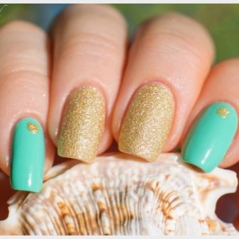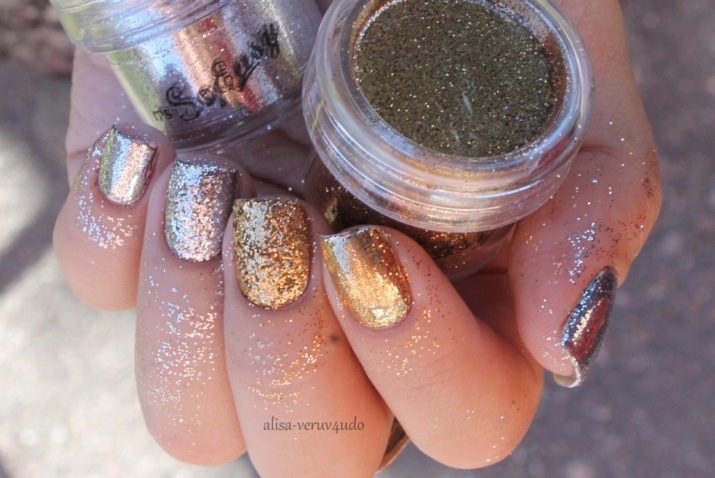 Nowadays, you can buy gel varnishes in which there are sparkles, including gold. The smaller their fraction, the thinner and smoother the layer will be, but you can experiment here ad infinitum. Also, a field for creating original images can be a mixture of different shades.