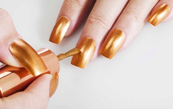 If everything is done correctly, then the manicure can last more than a week. It is recommended to take golden varnishes that change color depending on the light intensity. The technology for applying them is as follows: