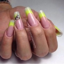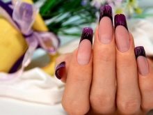 - This manicure has a high degree of strength. The nails will be protected by a fairly thick layer of gel, and due to the bend they will not cling and will become more resistant to small shocks.
