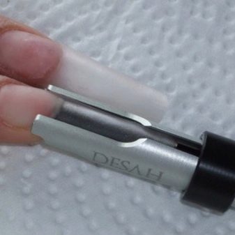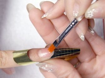 From a conventional gel nail extension, this type differs only in the use of special clamps to create a bend. The fact is that our nails by nature have a small C-bend in a transverse section. If we build up nails on tips, then it is already laid in the form of the workpiece itself (but not so pronounced).