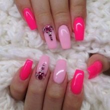 Gentle, but at the same time, gorgeous pink manicure on long nails looks bold.