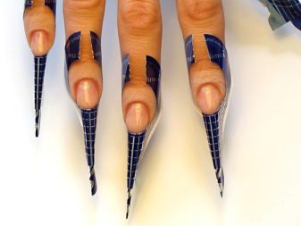 It will not work to make stilettos from any ready-made form - this is another of the features of this form. It is created from scratch, laying out material on the template and forming the necessary bend with tweezers. The technique involves clamping the plate along the entire length, starting from the base and ending with the edge of the nail plate. If the edge is too sharp, it is smoothed out, since excessive sharpness causes a quick nail breakage, and this is not beneficial for any master.