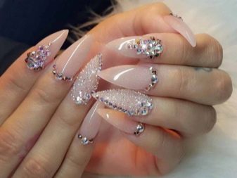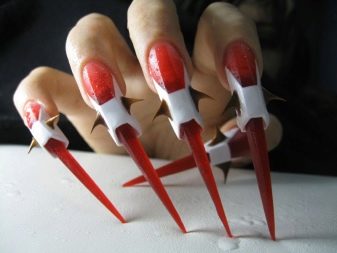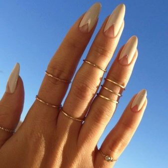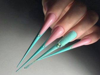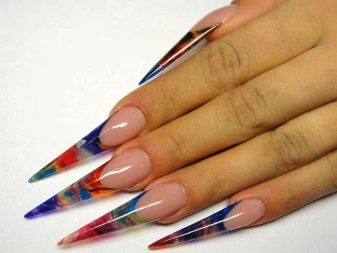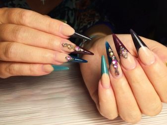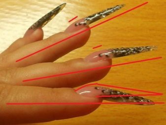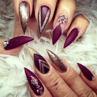 This form is rarely done on natural nails, since it is not possible for a woman to keep it for a long time. Sharp edges are very quickly injured, and therefore it is necessary to correct them, taking off the length, or even completely changing it to a more traditional form. A distinctive feature of nails of this form is the fact that they are not suitable for every female handles.