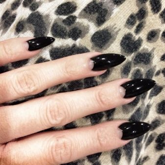 The acute form of nails or stilettos are not universal. Externally, they are elongated or very long nail plates with a sharp edge. The short form of the stylet differs from the almond in greater sharpness. In everyday life, such nails are uncomfortable: the sharper and longer, the less their strength and the higher the risk of possible injury due to accidental mechanical contact with anything.
