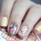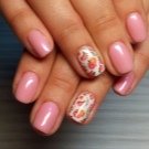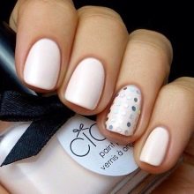 For girls, a simple one-color manicure is more suitable: beige, milky, pink, lavender. Neutral shades look equally good individually and in combination with each other. Based on a uniform coating, one nail can be distinguished, for example, anonymous, with a different color or pattern. The combination of beige and cream will create a warm manicure.