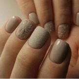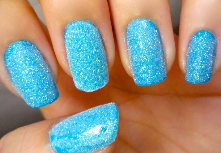 Sand nail polish can be applied not only to long, but also to short nails. This manicure is also called sugar, since grains of sand create an unusual rough texture. Numerous grains can be bright or neutral in color, matte or shiny texture.