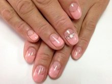 Rhinestones, gloss on nails always cause admiration and attracts general attention. A gentle manicure of a nude shade is a great choice for a teenager. It can perfectly complement the neat and discreet rhinestones.