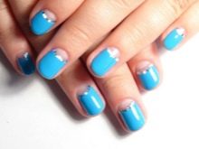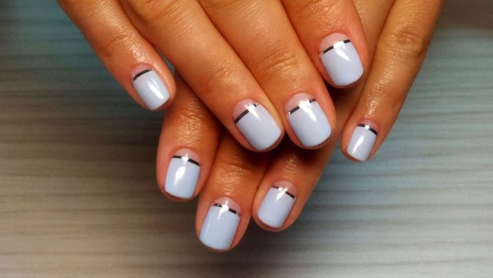 Pastel shades on short nails emphasize the modesty and grace of a schoolgirl. Stripes of white or silver color can be placed along or across, to create incredible geometric shapes. Such a manicure looks fresh in the summer.