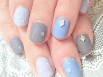 A manicure with a matte finish and several drops of dew made of silicone looks charming and at the same time quite restrained.