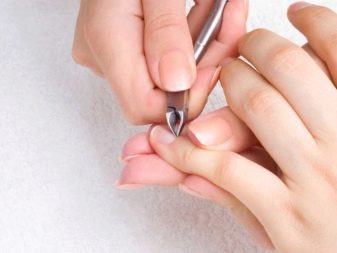 - If necessary, the cuticle is removed using a special liquid agent - remover, and treated with an antimicrobial agent.