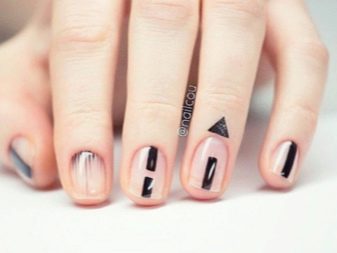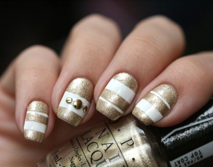 Using strips in the design visually makes the nails thinner and more elegant. Geometric and graphic patterns are always popular. It is not necessary to be a gifted artist, if you wish, you can always use special stencils.