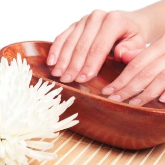 - Then you need to make a warm short bath with a few drops of fragrant oil, such as lemon. Baths with sea salt, iodine will help get rid of the problem of weak and exfoliating nails.