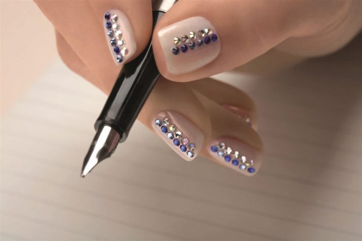 Various decorative elements will help to make a manicure unique: rhinestones, stripes, dots.