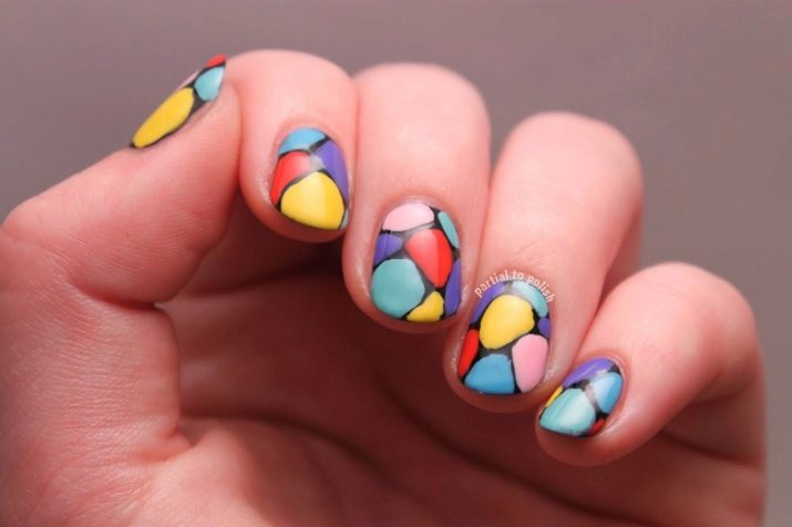 A trendy trend is a mosaic, as if created from colored glass or mica.