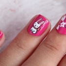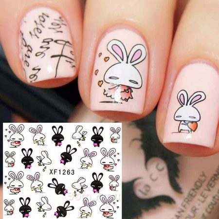 - Delicate teenage jacket in nude tones with accentuation of nails by funny bunnies.