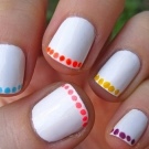 - A concise solution in the lunar technique using dots to make peas on accent nail plates.