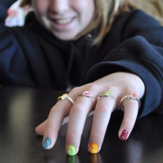 Rule number one is to observe the rules of hygiene. Little girls are not recommended to do manicures using gel polish or gel, which needs to be dried under a special lamp. Do not start design with sore nails (it is preferable to cure them and grow at least a little).
