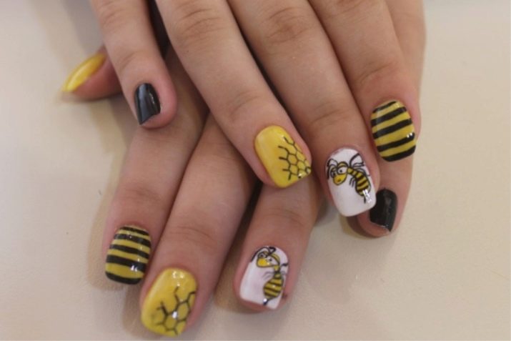 - An unusual version of the design of nails with bees, which every young fashionista will appreciate.
