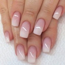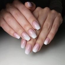 Like the classic French design, a french jacket with a gradient can be applied to the nails, regardless of their length.However, the middle nails are considered the most suitable for such a manicure. It is on them that he looks particularly elegant. By the way, this version of the nail design is universal, as it is equally suitable for very young girls and a serious mature business woman. In addition, choosing the right color can complement the wedding dress, evening silk dress, and summer beach bow.