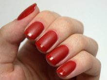 The classic includes matte black, beige and pink jacket. Monochromaticity will become more interesting if you use a combination of dullness and gloss. If you cover the nail plate with matte varnish and draw a glossy smile, then even a black or dark red plain manicure will turn into an acceptable business option.