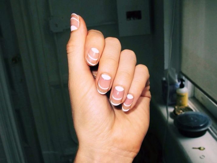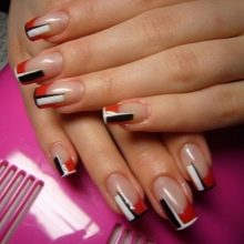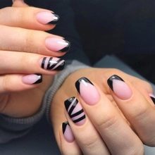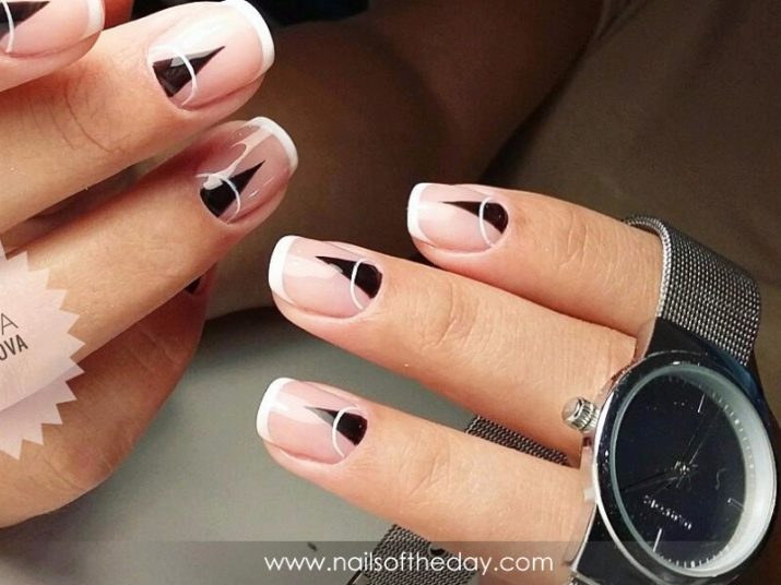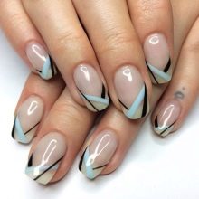 Geometric patterns are a trend of recent years. Strips of different lengths and widths are especially popular today. French can be varied by changing the width or shape of the border of the nail plate, its color or texture.