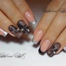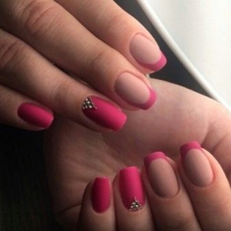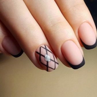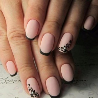 A combination of matte and glossy coatings is successful, which makes it possible to diversify monochrome manicure, for example, if you use matte varnish for the base and cover the tip with gloss. The most spectacular design looks in black.