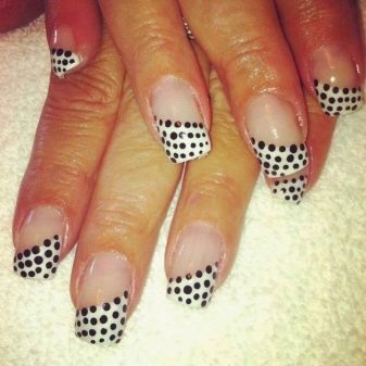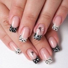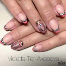 Often, dots are used when designing manicure in the style of casual or ethno. The drawing is performed by the dots, imposing it either along the edge of the nail, or in the area of the hole. Also, with the help of dots, you can enclose the nail plate in a frame.