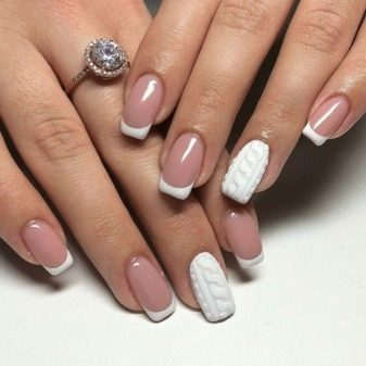 White manicure is considered a classic version of the jacket. For lovers of accuracy and simplicity, a white edging on a pastel basis is an ideal option. Modern materials allow you to diversify the white jacket with various decorative elements, which creates volume, makes interesting notes in the image.