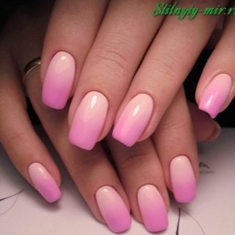 - Ombre effect. Fantasy transitions of saturated shades on the edge of the nail look amazing.