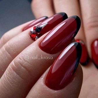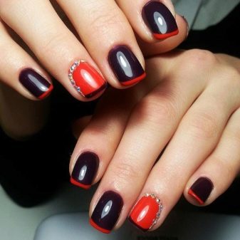 - Contrasts with dark, for example, black, burgundy, coffee, chocolate, eggplant, dark green. The nuance of such a manicure is that it is necessary to correctly combine colors, otherwise there is a risk of getting bad taste.