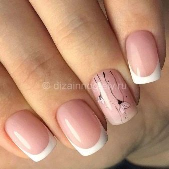 French manicure with patterns is universal and appropriate for any style. But keep in mind that if there are restrictions on the dress code, then for drawings it is better to use the varnish of the color that is present in the jacket.