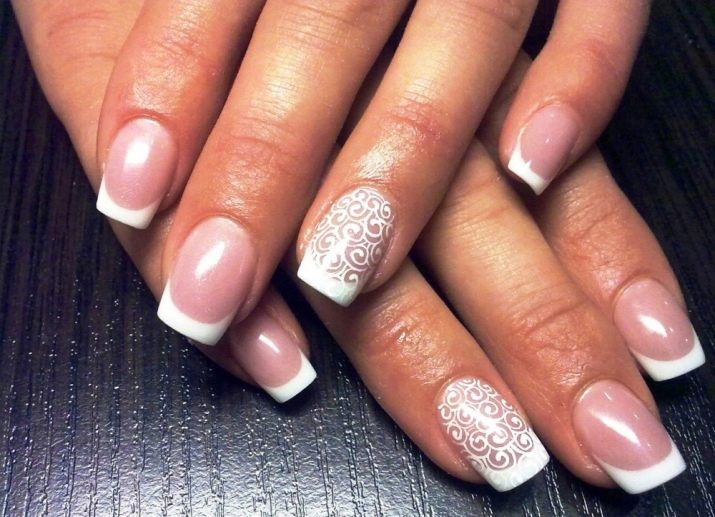 Openwork patterns organically fit into the design of French manicure. Lace in any color looks exquisite, complementing and decorating it.