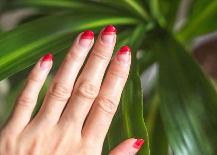 - Negative space design with unpainted space. In this case, the color varnish contrasts with the natural shade of the nail plate.