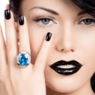 The star of another famous series, Jennifer Aniston, despite her considerable age, does not mind covering medium length nails with dark varnish. Ex-spouse of Brad Pitt looks perfect at the same time, because her manicure always echoes the chosen bow.