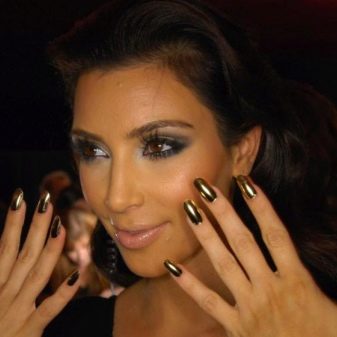 Fans are guided by the stars of social networks. One of them is considered to be a fashion model, businesswoman and participant in numerous shows, Kim Kardashian. She, like her sister Kendall Jenner, who starred in the Kardashian Family talk show, prefers nude shades of varnish, the length of the nails is medium, and the shape is rounded.