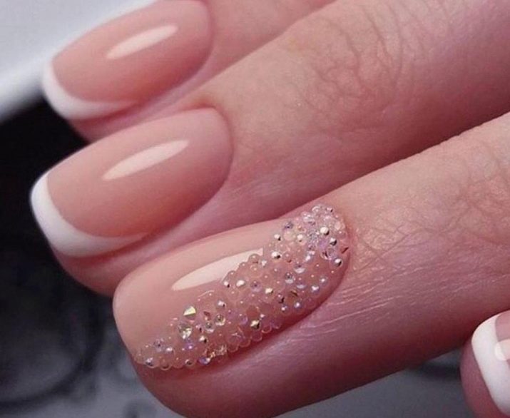 - Stripes, ornament, “smile” line in French manicure - everything can be created using mini-rhinestones. Each design will look individually, but always equally brilliant.