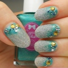 - A very beautiful manicure that will not go unnoticed when real works of art flaunt on the nails. Moreover, the drawings on the right hand are different from those on the left. But the general idea is sustained, the color combinations are observed, so the overall picture looks just gorgeous. At the same time, only two nails on each hand are decorated with drawings, the rest are painted with blue varnish with imitation of water droplets.