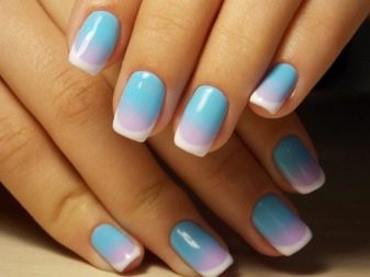 Gradient design is a popular subtype of French nail art, which represents a beautiful smooth transition of very close and similar colors or, on the contrary, contrasting opposite colors. In the gradient nail design, the boundaries between the colors used are mandatory, but they are not clear, but blurry.