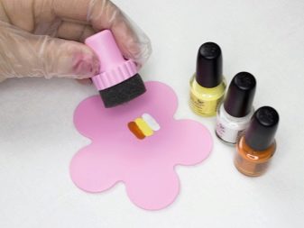 - A pre-selected color varnish just needs to be applied in even stripes to a small piece of sponge or sponge. The coating should absorb a little.