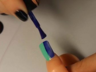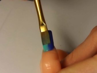 - Even before the varnish has time to dry well, you need to take a sponge and lightly patting it to create a border between the colors - the border should look blurry and not too distinct.