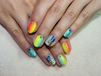 - If you like rhinestones, stickers, ornament, you will also have a place to apply your imagination here - all these elements perfectly fit into the gradient design. Instead of a base with a glossy effect, you can apply a matte - suddenly you will like it more.
